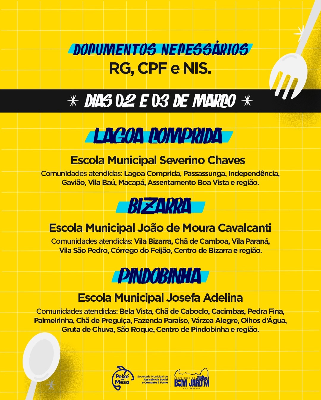 📍 02 e 03 de Março: Lagoa Comprida, Bizarra e Pindobinha.