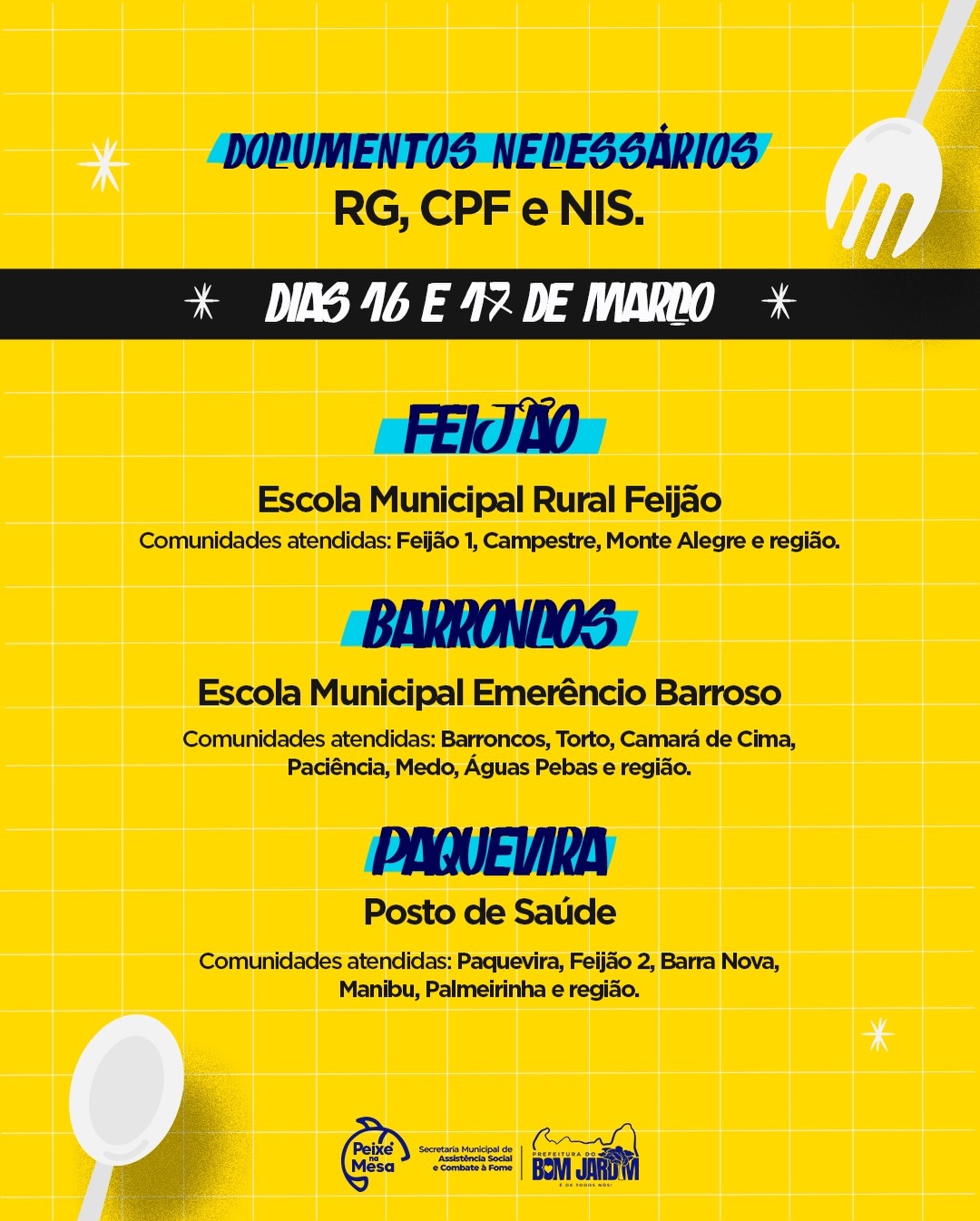 📍 16 e 17 de Março: Feijão, Barroncos e Paquevira.